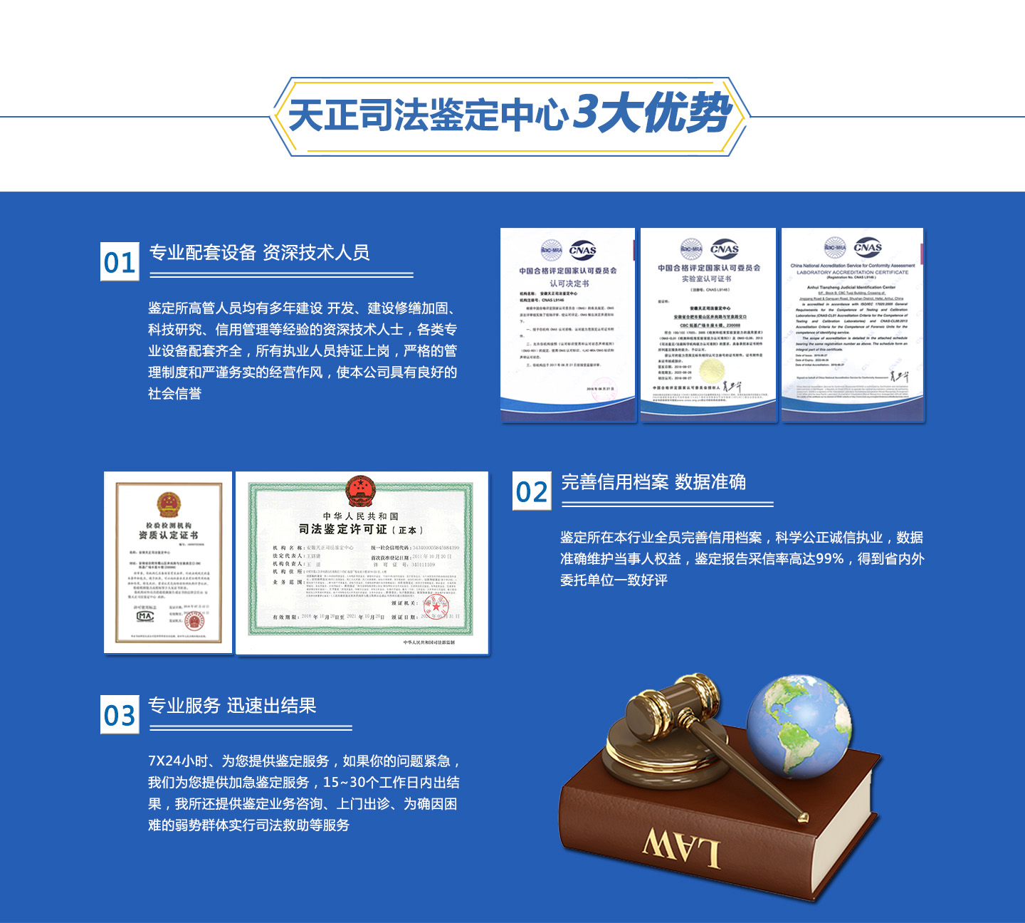 安徽天正司法鑒定中心于2011年10月20日,經(jīng)安徽省司法廳批準(zhǔn)成立;是一所集法醫(yī)類鑒定、痕跡鑒定、文書鑒定、聲像鑒定、微量物證鑒定于一體的綜合類的司法鑒定機構(gòu)。 我中心位于合肥市蜀山區(qū)井崗路與甘泉路交口CBC拓基拓基廣場B座5樓、6樓,職場面積近2000平方米,配備技術(shù)人才,建有鑒定實驗室及儀器設(shè)備。截止目前,我中心有司法鑒定人53名,具有中級以上技術(shù)職稱的36名;并建有安徽天正司法鑒定中心實驗科研中心、法醫(yī)毒物實驗室、法醫(yī)物證實驗室、電子數(shù)據(jù)實驗室、法醫(yī)病理實驗室、微量物證實驗室、文檢實驗室等,同時與各大高校建立校企合作關(guān)系,提供實習(xí)實訓(xùn)平臺。